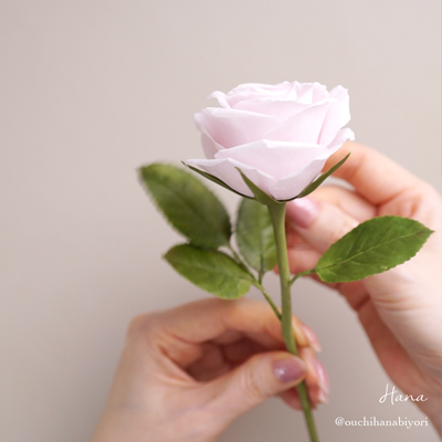 ローズの制作プロセス全解説。花芯から花びら、組み方、ガク、葉の作り方までステップ・バイ・ステップで。