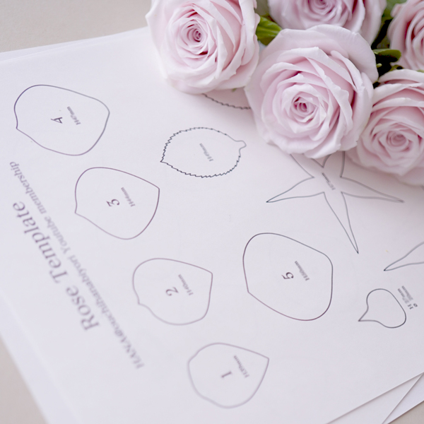ローズの花びら各サイズのPDFテンプレートをダウンロードいただけます。 印刷してそのまま型紙として使えるので、 花びらのサイズ感を迷わずに制作をスタートできます。